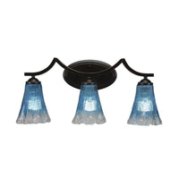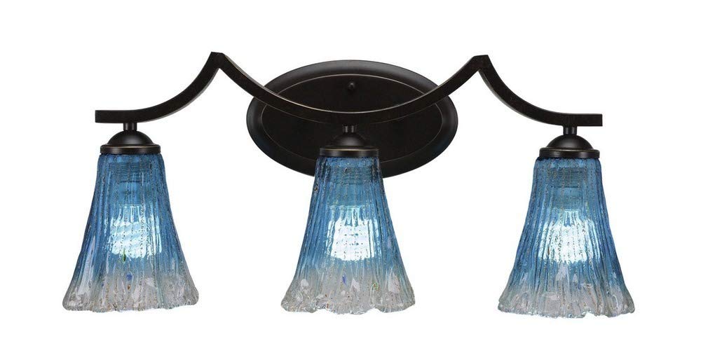 The Zilo 3 Light Bath Bar in Dark Granite Finish with 5.5-Inch Fluted Teal Crystal Glass is UL/CUL Listed. Product Dimensions: 7.75-inches deep x 22.75-inches long x 10-inches tall. Requires 3 100-Watt medium incandescent bulbs. The beauty of Toltec Lighting's entire product line is the opportunity to create a look all your own. Toltec Lighting now offers over 40 glass shade choices, with most being available as an option on every lighting family, making the variations limitless. It really doesn't matter if a project requires Traditional, Transitional, or Contemporary styling, Toltec Lighting fixtures will fit most any decor.