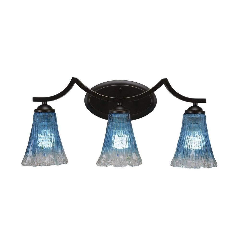 Toltec Lighting 553-Dg-725 Zilo 3 Light Bath Bar With 5.5" Teal Crystal Glass