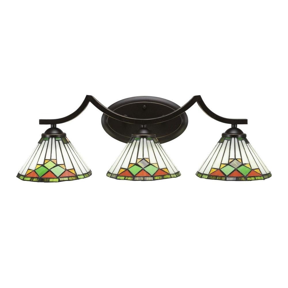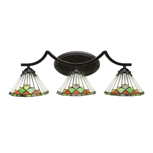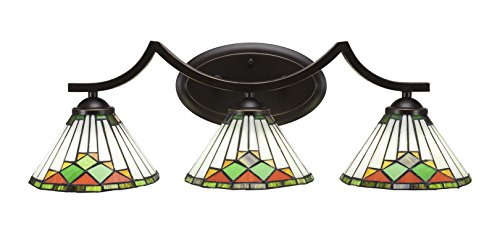 The Zilo 3 Light Bath Bar in Dark Granite Finish with 7-Inch Green Sunray Tiffany Glass is UL/CUL Listed. Product Dimensions: 8.75-inches deep x 24-inches long x 8.25-inches tall. Requires 3 100-Watt medium incandescent bulbs. The beauty of Toltec Lighting's entire product line is the opportunity to create a look all your own. Toltec Lighting now offers over 40 glass shade choices, with most being available as an option on every lighting family, making the variations limitless. It really doesn't matter if a project requires Traditional, Transitional, or Contemporary styling, Toltec Lighting fixtures will fit most any decor.