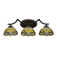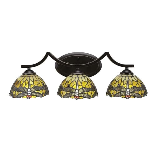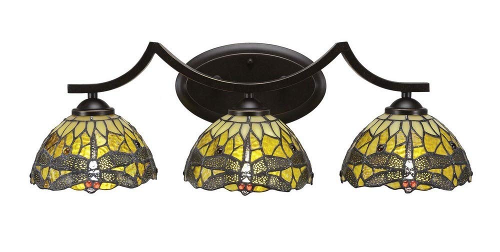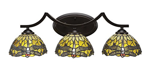 The Zilo 3 Light Bath Bar in Dark Granite Finish with 7-Inch Amber Dragonfly Tiffany Glass is UL/CUL Listed. Product Dimensions: 8.5-inches deep x 24.25-inches long x 8.25-inches tall. Requires 3 100-Watt medium incandescent bulbs. The beauty of Toltec Lighting's entire product line is the opportunity to create a look all your own. Toltec Lighting now offers over 40 glass shade choices, with most being available as an option on every lighting family, making the variations limitless. It really doesn't matter if a project requires Traditional, Transitional, or Contemporary styling, Toltec Lighting fixtures will fit most any decor.