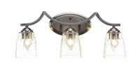 The Zilo 3 Light Bath Bar in Dark Granite Finish with 4.5-Inch Clear Bubble Glass is UL/CUL Listed. Product Dimensions: 7.25-inches deep x 21.25-inches long x 9.5-inches tall. Back plate Dimension: 5.25-inch wide x 9-inch height x 1.25-inch depth. Requires 3 100-Watt medium incandescent bulbs. The beauty of Toltec Lighting's entire product line is the opportunity to create a look all your own. Toltec Lighting now offers over 40 glass shade choices, with most being available as an option on every lighting family, making the variations limitless. It really doesn't matter if a project requires traditional, transitional, or contemporary styling, Toltec Lighting fixtures will fit most any decor.
