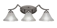 The Zilo 3 Light Bath Bar in dark granite finish with 7-Inch Frosted Crystal Glass is UL/CUL Listed. Product Dimensions: 8. 5-inches deep x 23. 75-inches long x 8. 25-inches tall. Back plate dimension: 5. 25-inch wide x 9-inch height x D 1. 25-inch. Requires 3 100-Watt medium incandescent bulbs. The beauty of Toltec Lighting's entire product line is the opportunity to create a look all your own. Toltec Lighting now offers over 40 glass shade choices, with most being available as an option on every lighting family, making the variations limitless. It really doesn't matter if a project requires traditional, transitional, or contemporary styling, Toltec Lighting fixtures will fit most any decor.