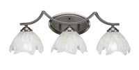 The Zilo 3 Light Bath Bar in dark granite finish with 7-Inch Gold Ice Glass is UL/CUL Listed. Product Dimensions: 8.5-inches deep x 24.25-inches long x 8.5-inches tall. Back plate dimension: 5.25-inch wide x 9-inch height x 1.25-inch depth. Requires 3 100-Watt medium incandescent bulbs. The beauty of Toltec Lighting's entire product line is the opportunity to create a look all your own. Toltec Lighting now offers over 40 glass shade choices, with most being available as an option on every lighting family, making the variations limitless. It really doesn't matter if a project requires traditional, transitional, or contemporary styling, Toltec Lighting fixtures will fit most any decor.