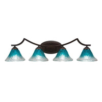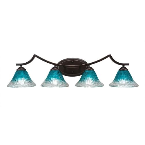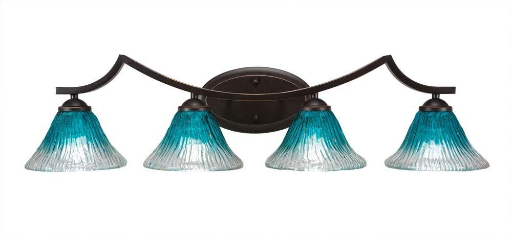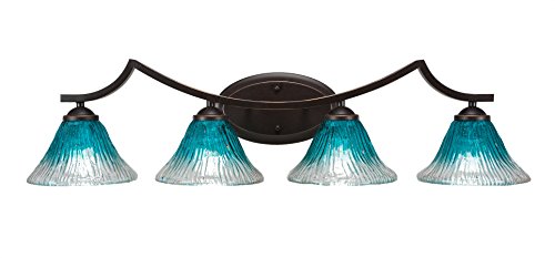 The Zilo 4 Light Bath Bar in Dark Granite Finish with 7-Inch Teal Crystal Glass is UL/CUL Listed. Product Dimensions: 8.5-inches deep x 32.75-inches long x 8-inches tall. Back plate Dimension: 5.25-inch wide x 9-inch height x D 1.25-inch. Requires 4 100-Watt medium incandescent bulbs. The beauty of Toltec Lighting's entire product line is the opportunity to create a look all your own. Toltec Lighting now offers over 40 glass shade choices, with most being available as an option on every lighting family, making the variations limitless. It really doesn't matter if a project requires Traditional, Transitional, or Contemporary styling, Toltec Lighting fixtures will fit most any decor.