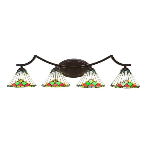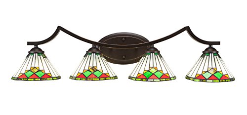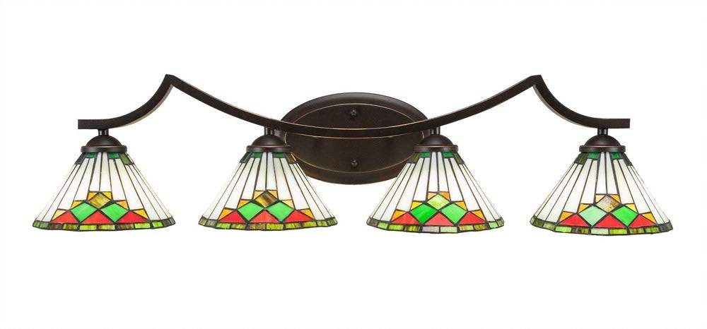 Toltec Lighting 554-Dg-9375 Zilo 4 Light Bath Bar Green Sunray Tiffany Glass