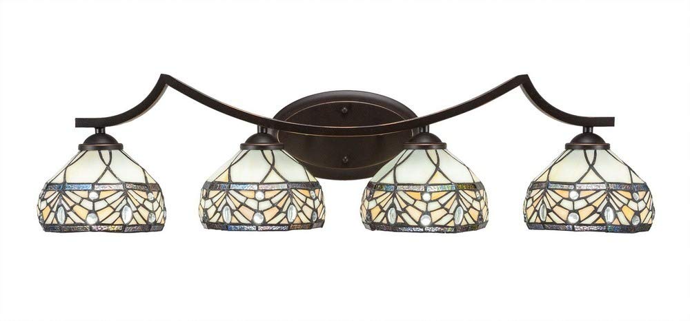 Toltec Lighting 554-Dg-9485 Zilo 4 Light Bath Bar, 7" Royal Tiffany Glass