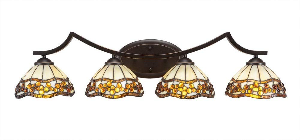 Toltec Lighting 554-Dg-9975 Zilo 4 Light Bath Bar Roman Jewel Tiffany Glass