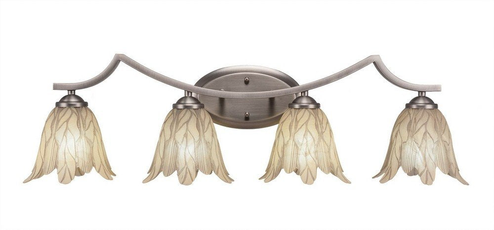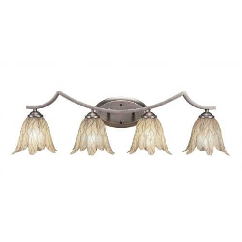 The Zilo 4 Light Bath Bar in Graphite Finish with 7-Inch Vanilla Leaf Glass is UL/CUL Listed. Product Dimensions: 8.5-inches deep x 32.75-inches long x 8-inches tall. Back plate Dimension: 5.25-inch wide x 9-inch height x D 1.25-inch. Requires 4 100-Watt medium incandescent bulbs. The beauty of Toltec Lighting's entire product line is the opportunity to create a look all your own. Toltec Lighting now offers over 40 glass shade choices, with most being available as an option on every lighting family, making the variations limitless. It really doesn't matter if a project requires Traditional, Transitional, or Contemporary styling, Toltec Lighting fixtures will fit most any decor.
