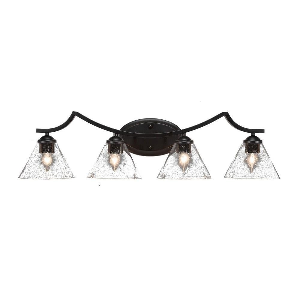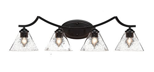 The Zilo 4 Light Bath Bar in Matte Black Finish with 4-Inch White Muslin Glass is UL/CUL Listed. Product Dimensions: 8-inches deep x 29.75-inches long x 10-inches tall. Back plate Dimension: 5.25-inch wide x 9-inch height x D 1.25-inch. Requires 4 100-Watt medium incandescent bulbs. The beauty of Toltec Lighting's entire product line is the opportunity to create a look all your own. Toltec Lighting now offers over 40 glass shade choices, with most being available as an option on every lighting family, making the variations limitless. It really doesn't matter if a project requires Traditional, Transitional, or Contemporary styling, Toltec Lighting fixtures will fit most any decor.