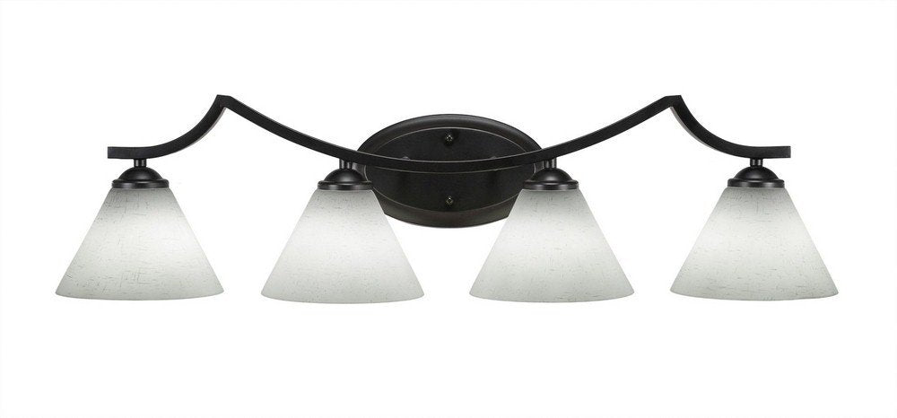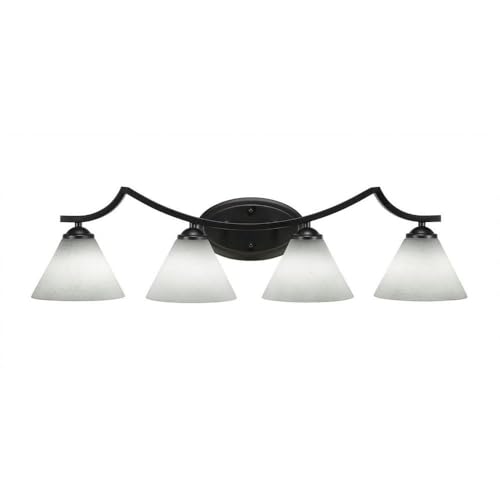 The Zilo 4 Light Bath Bar in Matte Black Finish with 7-Inch White Muslin Glass is UL/CUL Listed. Product Dimensions: 8.25-inches deep x 32.75-inches long x 10-inches tall. Back plate Dimension: 5.25-inch wide x 9-inch height x D 1.25-inch. Requires 4 100-Watt medium incandescent bulbs. The beauty of Toltec Lighting's entire product line is the opportunity to create a look all your own. Toltec Lighting now offers over 40 glass shade choices, with most being available as an option on every lighting family, making the variations limitless. It really doesn't matter if a project requires Traditional, Transitional, or Contemporary styling, Toltec Lighting fixtures will fit most any decor.