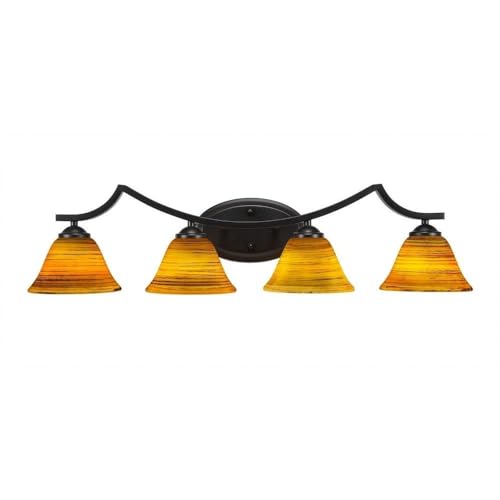 The Zilo 4 Light Bath Bar in Matte Black Finish with 7-Inch Firre Saturn Glass is UL/CUL Listed. Product Dimensions: 7.75-inches deep x 32.5-inches long x 10-inches tall. Back plate Dimension: 5.25-inch wide x 9-inch height x D 1.25-inch. Requires 4 100-Watt medium incandescent bulbs. The beauty of Toltec Lighting's entire product line is the opportunity to create a look all your own. Toltec Lighting now offers over 40 glass shade choices, with most being available as an option on every lighting family, making the variations limitless. It really doesn't matter if a project requires Traditional, Transitional, or Contemporary styling, Toltec Lighting fixtures will fit most any decor.