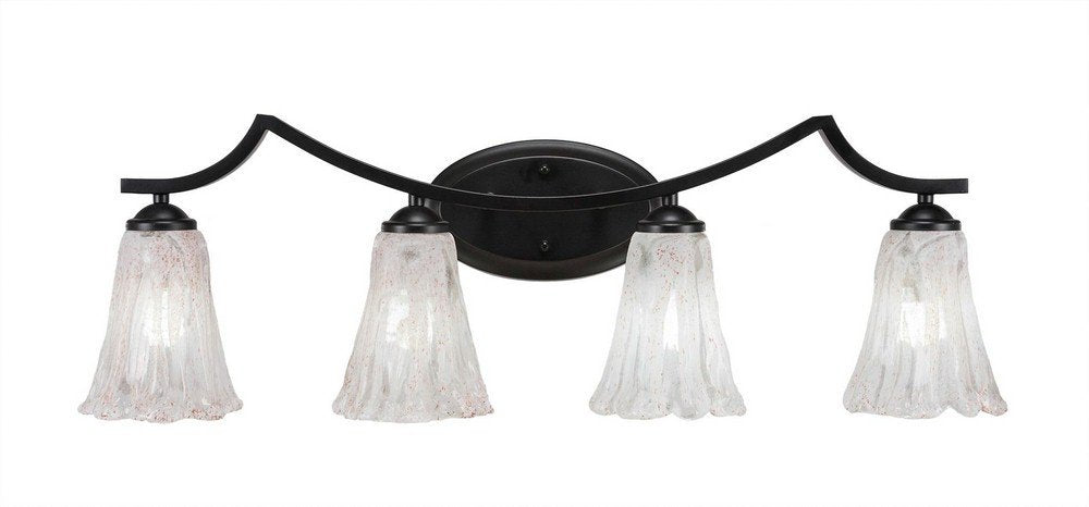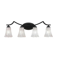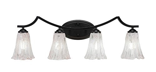 The Zilo 4 Light Bath Bar in Matte Black Finish with 5.5-Inch Fluted Italian Ice Glass is UL/CUL Listed. Product Dimensions: 7.75-inches deep x 31.75-inches long x 8.75-inches tall. Back plate Dimension: 5.25-inch wide x 9-inch height x D 1.25-inch. Requires 4 100-Watt medium incandescent bulbs. The beauty of Toltec Lighting's entire product line is the opportunity to create a look all your own. Toltec Lighting now offers over 40 glass shade choices, with most being available as an option on every lighting family, making the variations limitless. It really doesn't matter if a project requires Traditional, Transitional, or Contemporary styling, Toltec Lighting fixtures will fit most any decor.