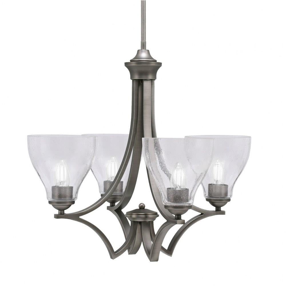 Collection: Zilo, Material: Steel, Finish Color: Graphite, Width: 21.25", Height: 19.75", Chain Length: 48", Lamping Type: Incandescent, Number Of Bulbs: 4, Wattage: 60 Watts, Dimmable: Yes, Moisture Rating: Dry Rated, Desc: Zilo Uplight, 4 Light, Chandelier In Dark Granite Finish With 6.25 Inch Clear Bubble Glass,