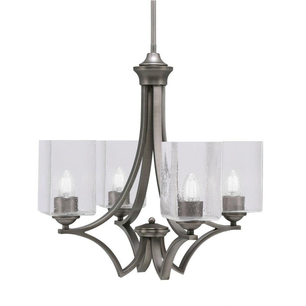 Collection: Zilo, Material: Steel, Finish Color: Graphite, Width: 19", Height: 19.75", Chain Length: 48", Lamping Type: Incandescent, Number Of Bulbs: 4, Wattage: 60 Watts, Dimmable: Yes, Moisture Rating: Dry Rated, Desc: Zilo Uplight, 4 Light, Chandelier In Dark Granite Finish With 4 Inch Clear Bubble Glass,