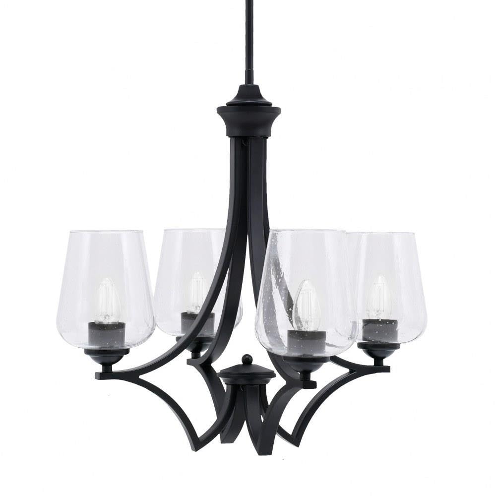 Collection: Zilo, Material: Steel, Finish Color: Matte Black, Width: 20.25", Height: 19.75", Chain Length: 48", Lamping Type: Incandescent, Number Of Bulbs: 4, Wattage: 60 Watts, Dimmable: Yes, Moisture Rating: Dry Rated, Desc: Zilo Uplight, 4 Light, Chandelier In Dark Granite Finish With 5 Inch Clear Bubble Glass,