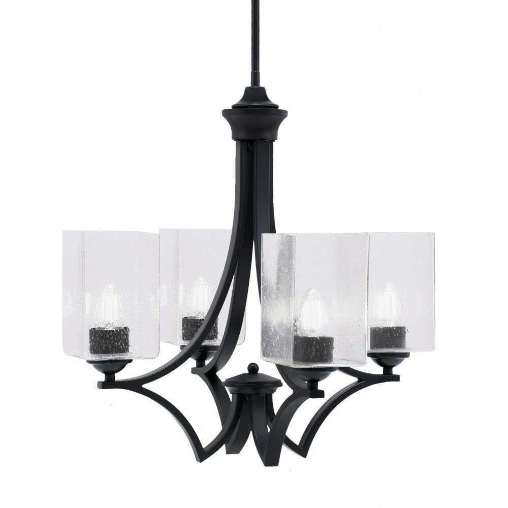 Collection: Zilo, Material: Steel, Finish Color: Matte Black, Width: 19", Height: 19.75", Chain Length: 48", Lamping Type: Incandescent, Number Of Bulbs: 4, Wattage: 60 Watts, Dimmable: Yes, Moisture Rating: Dry Rated, Desc: Zilo Uplight, 4 Light, Chandelier In Dark Granite Finish With 4 Inch Clear Bubble Glass,