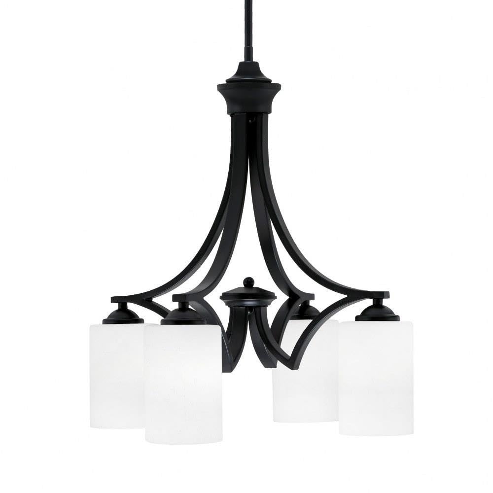 Q: What is the finish and glass color of the Zilo chandelier?A: The Zilo chandelier features a matte black finish with white muslin glass, providing a stylish and modern look.