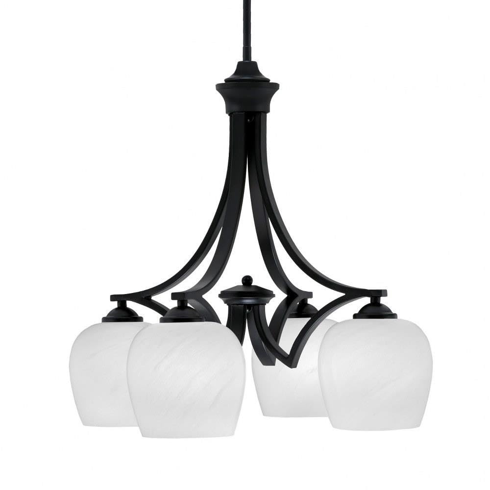 Collection: Zilo, Material: Glass, Finish Color: Matte Black, Width: 21.25", Height: 20.75", Chain Length: 48", Lamping Type: Incandescent, Number Of Bulbs: 4, Wattage: 60 Watts, Dimmable: Yes, Moisture Rating: Dry Rated, Desc: Zilo Downlight, 4 Light, Chandelier In Dark Granite Finish With 6 Inch White Marble Glass,
