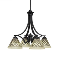 Toltec Lighting 568-Mb-7185 Zilo 4 Light Chandelier With Chocolate Icing Glass, 7", 19.75" X 19.75" X 19.25", Matte Black
