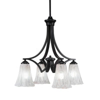 Toltec Lighting 568-Mb-729 Zilo 4 Light Chandelier With 5.5" Fluted Italian Ice Glass, Matte Black Finish, 19" X 20.25" X 21"