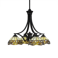 Toltec Lighting 568-Mb-9975 Zilo 4 Light Chandelier With Roman Jewel Glass, 7", 20.5" X 20.5" X 18.5", Matte Black