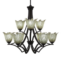 Toltec Lighting 569-Dg-1025 Zilo 9 Light Chandelier Shown With 7" Vanilla Leaf Glass, 28.25" X 28.25" X 27.75", Dark Granite