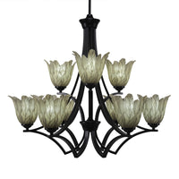 Toltec Lighting 569-Mb-1025 Zilo 9 Light Chandelier Shown With 7" Vanilla Leaf Glass, 28.25" X 28.25" X 27.75", Matte Black