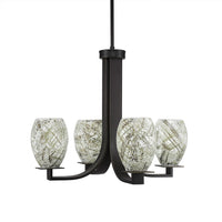 Toltec Lighting 574-Dg-5054 Apollo 4 Light Hang Straight Swivel Chandelier With Natural Fusion Glass, 5", 22.5" X 22.5" X 18", Dark Granite