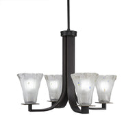 Toltec Lighting 574-Dg-721 Apollo 4 Light Hang Straight Swivel Chandelier With Fluted Frosted Crystal Glass, 5.5", 23.25" X 23.25" X 18", Dark Granite