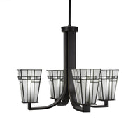 The Apollo 4 Light Chandelier with hang straight swivel in dark granite finish with 5-Inch square new Deco Tiffany glass is UL/CUL listed. Comes with 1-3-inch, 1-6-inch, 2-12-inch and 1-18-inch Stem sections and hang straight swivel. Product dimensions: 22.5-Inches wide x 18-inches tall. Requires 4 100-watt medium incandescent bulbs. The beauty of Toltec Lighting's entire product line is the opportunity to create a look all your own. Toltec Lighting now offers over 40 glass shade choices, with most being available as an option on every lighting family, making the variations limitless. It really doesn't matter if a project requires traditional, transitional, or contemporary styling, Toltec Lighting fixtures will fit most any decor.