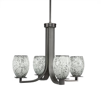 Toltec Lighting 574-Gp-4165 Apollo 4 Light Hang Straight Swivel Chandelier With Black Fusion Glass, 5", 22.5" X 22.5" X 18", Graphite