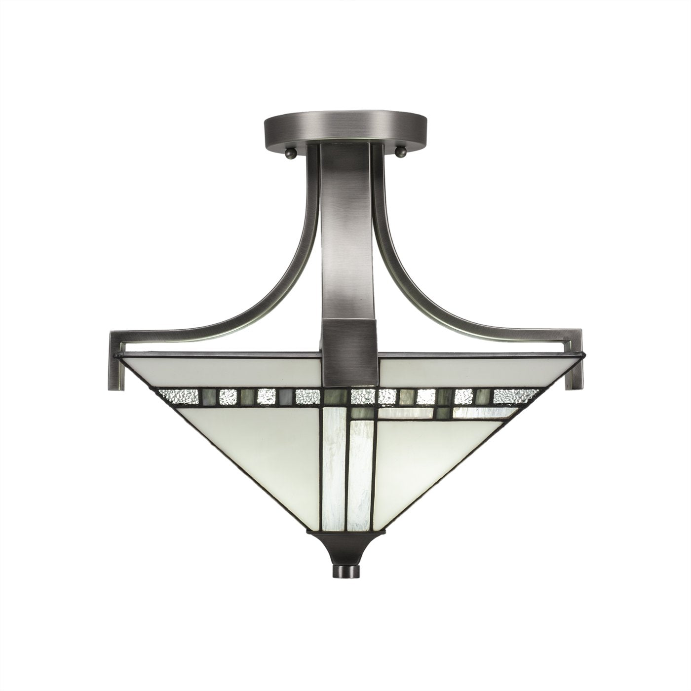 The Apollo semi-flush with 2 bulbs in graphite finish with square new Deco Tiffany glass is UL/CUL listed. Product dimensions: 15-inches wide x 13.75-Inches tall. Requires 2 60-Watt medium incandescent bulbs. The beauty of Toltec Lighting's entire product line is the opportunity to create a look all your own. Toltec Lighting now offers over 40 glass shade choices, with most being available as an option on every lighting family, making the variations limitless. It really doesn't matter if a project requires traditional, transitional, or contemporary styling, Toltec Lighting fixtures will fit most any decor.