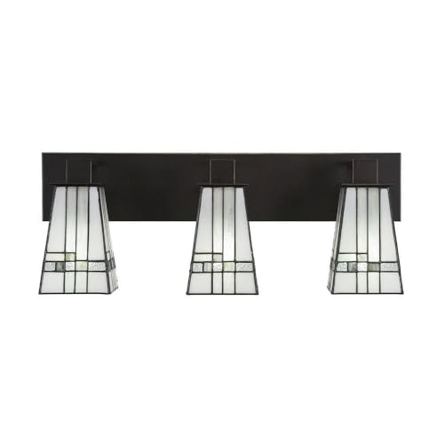 Toltec Lighting 583-Dg-9554 Apollo 3 Light Bath Bar Square New Deco Tiffany Glass
