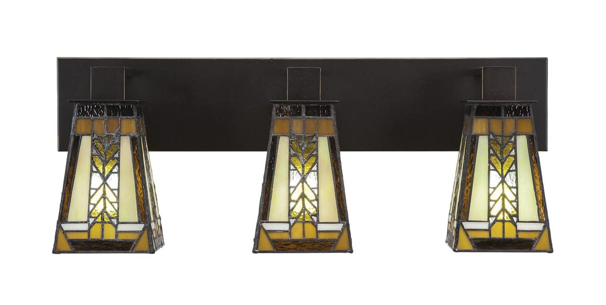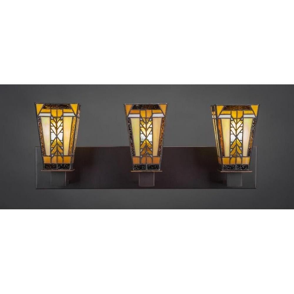 Toltec Lighting 583-Dg-9864 Apollo 3 Light Bath Bar With 5 Inch Square Santa Cruz Tiffany Glass, Dark Granite Finish