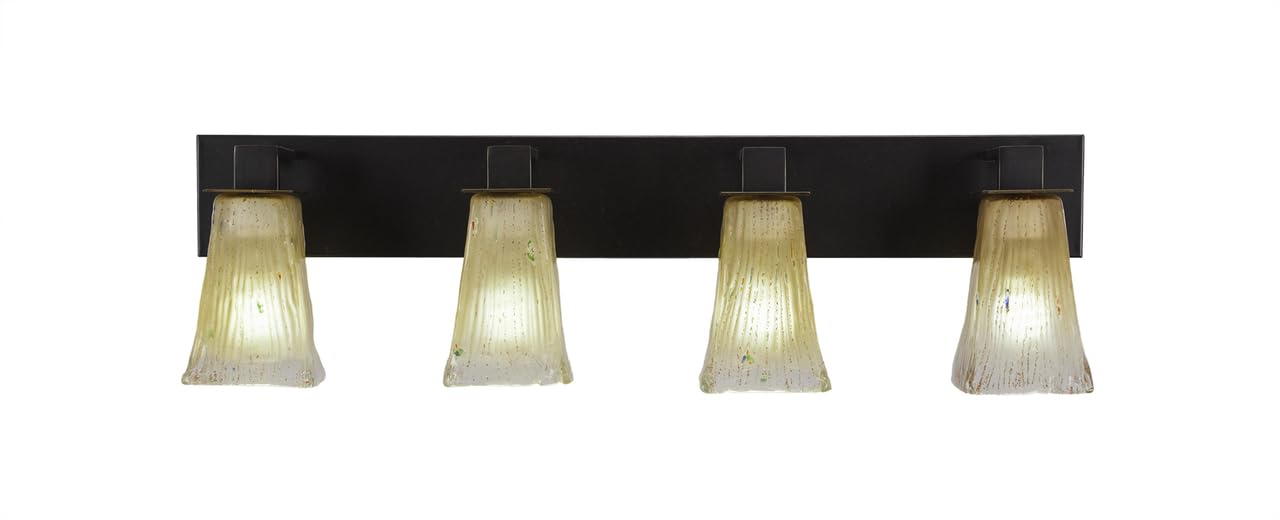 Toltec Lighting 584-Dg-630 Apollo 4 Light Bath Bar With 5" Square Amber Crystal Glass, Dark Granite Finish