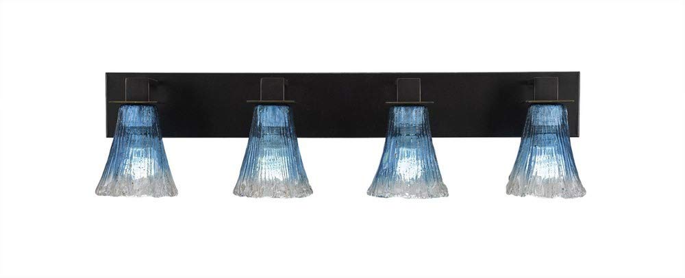 The Apollo 4 Light bath bar in dark granite finish with 5.5-Inch fluted teal crystal glass is UL/CUL listed. Product dimensions: 6.25-Inches deep x 32.75-Inches long x 8.5-Inches tall. Includes 4 100-watt medium incandescent bulbs. The beauty of Toltec Lighting's entire product line is the opportunity to create a look all your own. Toltec Lighting now offers over 40 glass shade choices, with most being available as an option on every lighting family, making the variations limitless. It really doesn't matter if a project requires traditional, transitional, or contemporary styling, Toltec Lighting fixtures will fit most any decor.