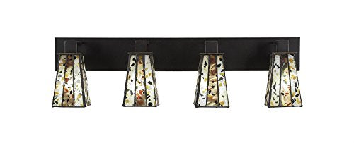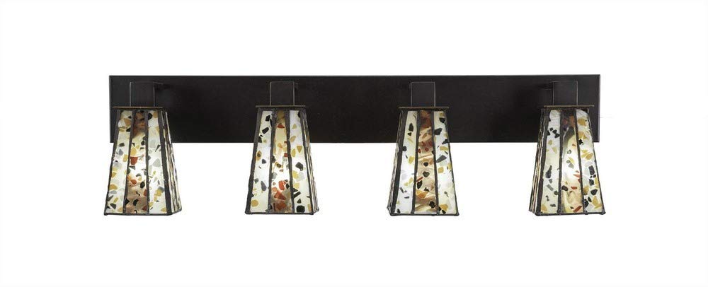 DescriptionThe Apollo 4 Light bath bar in dark granite finish with 5-Inch square Fiesta Tiffany glass is UL/CUL listed. Product dimensions: 6.25-Inches deep x 32.75-Inches long x 9.25-Inches tall. Includes 4 100-watt medium incandescent bulbs. The beauty of Toltec Lighting's entire product line is the opportunity to create a look all your own. Toltec Lighting now offers over 40 glass shade choices, with most being available as an option on every lighting family, making the variations limitless. It really doesn't matter if a project requires traditional, transitional, or contemporary styling, Toltec Lighting fixtures will fit most any decor.