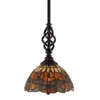 Toltec Lighting 80-Dg-9465 Elegante Mini Pendant With Hang Straight Swivel With 7 Inch Amber Dragonfly Tiffany Glass, Dark Granite Finish