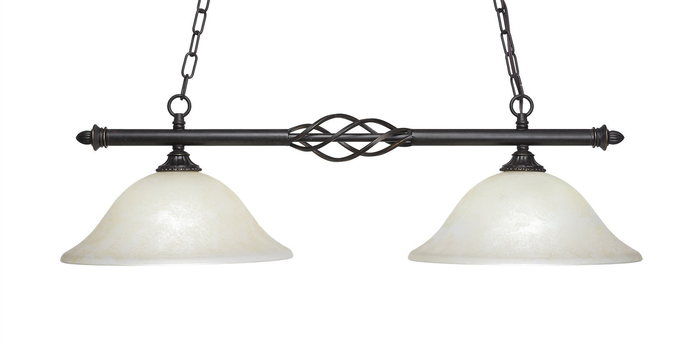 Toltec Lighting 862-Dg-523 Elegante 2 Light Island Light Shown With 12" Amber Marble Glass, Dark Granite