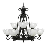 Toltec Lighting 869-Dg-755 Elegantn++ - Nine Light 2-Tier Chandelier, Dark Granite Finish With Gold Ice Glass