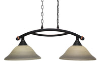 Toltec Lighting 872-Bc-604 Bow 2 Light Island Light Shown With 12" Gray Linen Glass, Black Copper