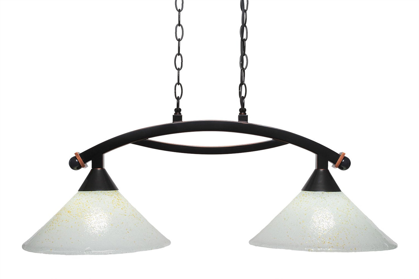 The Toltec bow 2 light island light shown in Black Copper finish with 12 inch gold ice glass. Founded in the 1975, we are a family owned and operated company dedicated to creating quality and competitively priced lighting fixtures for your home. Toltec is famous for quality and value. We take pride in having taken the lead in the field of design. We are continually introducing new concepts and ideas while maintaining a close eye on tradition.