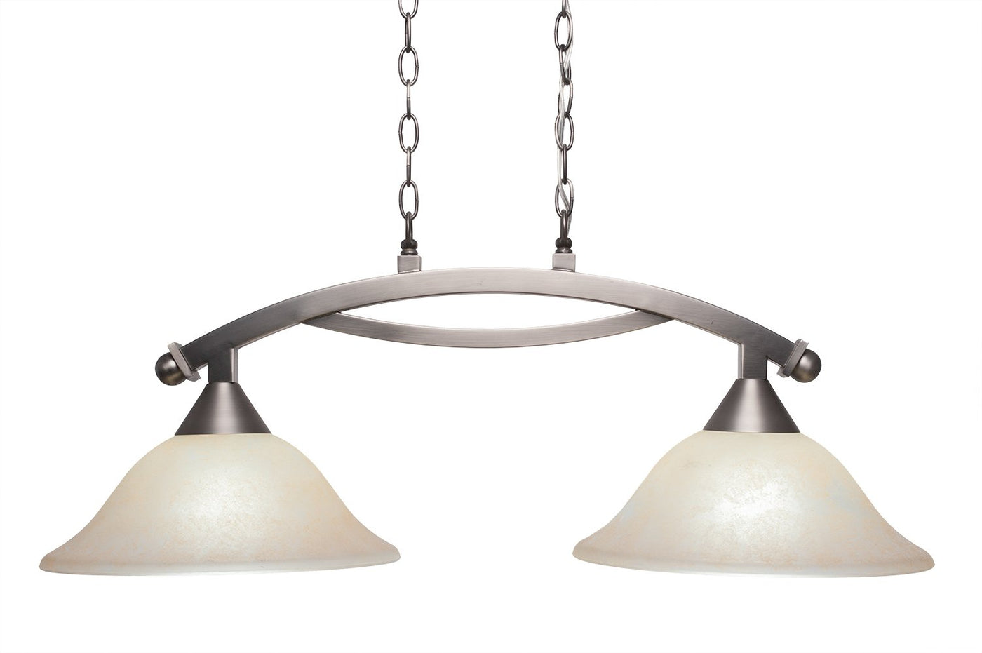 Toltec Lighting 872-Bn-523 Bow 2 Light Island Light With 12" Amber Marble Glass, Brushed Nickel Finish