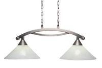 Q: What is the finish of the Toltec Lighting 872-BN-702?A: This island light features a brushed nickel finish, providing a sleek and modern look that complements a variety of home decor styles.