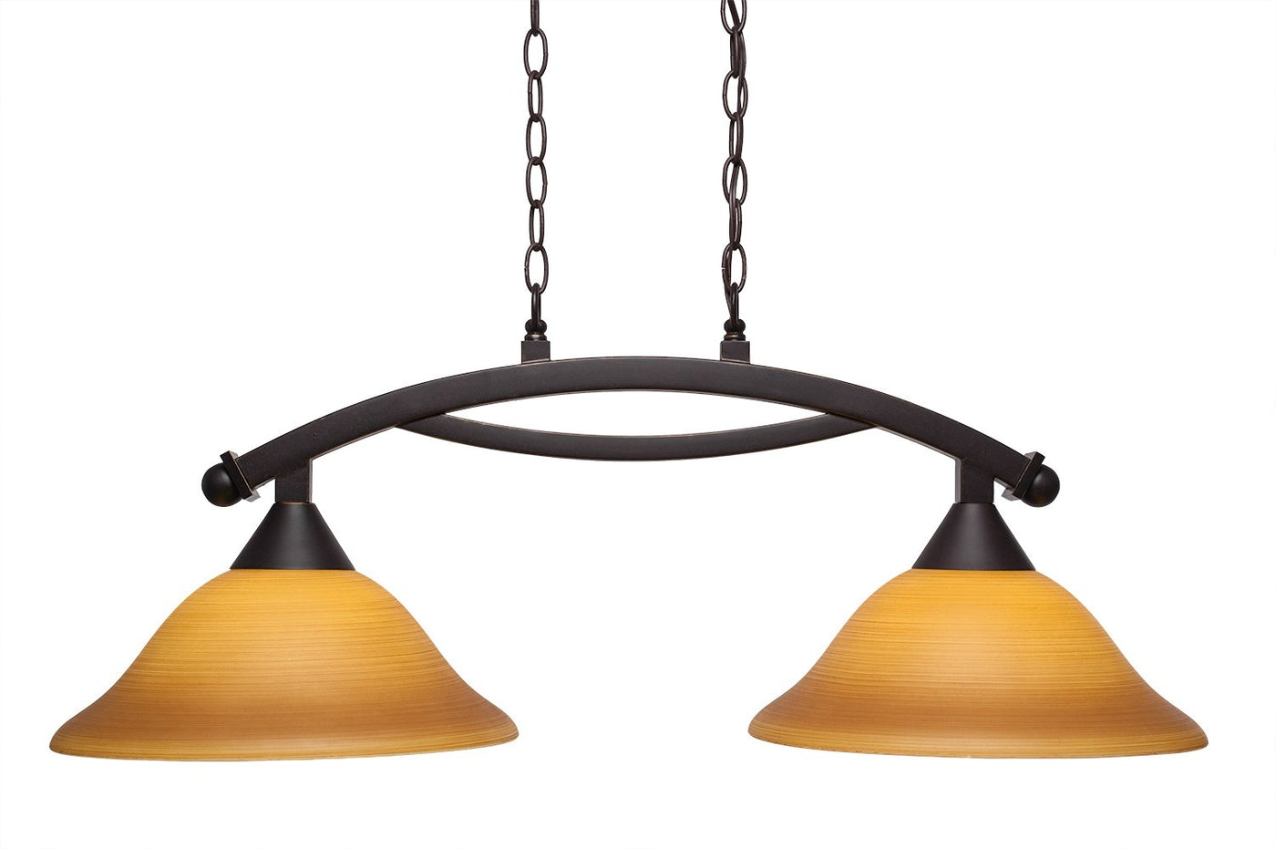 Toltec Lighting 872-Dg-624 Bow 2 Light Island Light With 12" Cayenne Linen Glass, Dark Granite Finish
