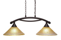 Toltec Lighting 872-Dg-700 Bow 2 Light Island Light With 12" Amber Crystal Glass, Dark Granite Finish