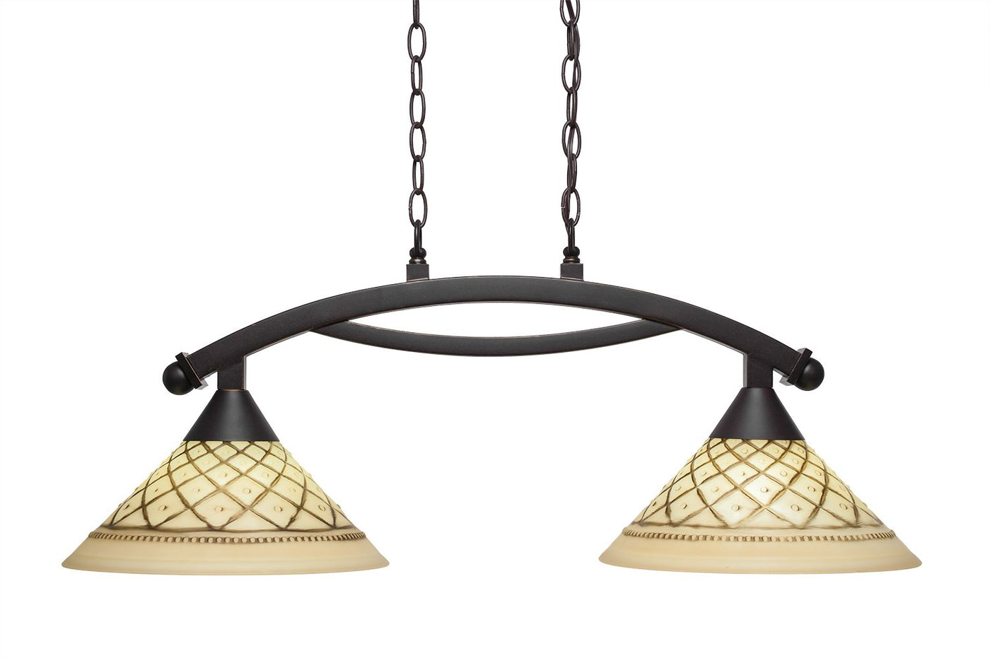 Q: Is the Toltec Lighting 872-DG-7182 suitable for large island bars?A: Yes, the Toltec Lighting 872-DG-7182 Bow Island Light is designed for island bars, measuring 33 inches in length and 12 inches in width, making it a perfect fit for larger spaces.