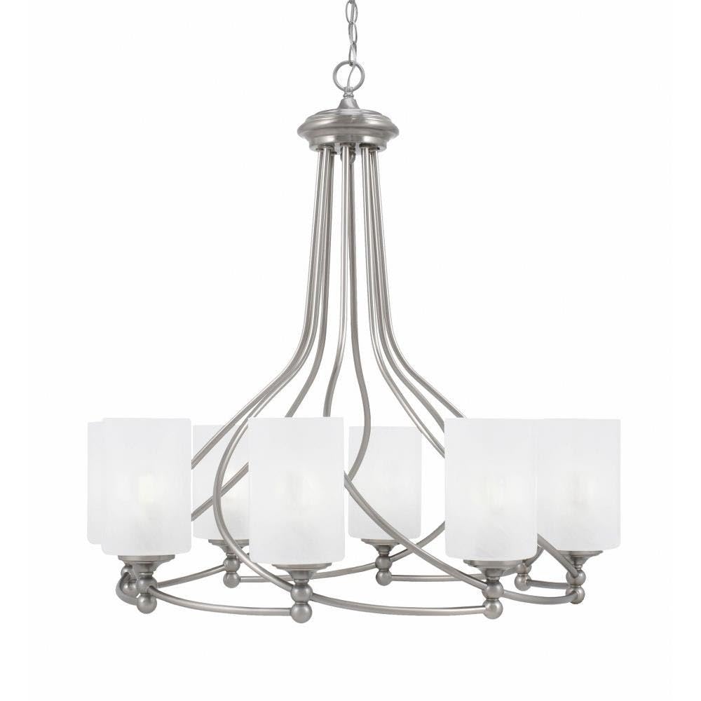 Collection: Capri, Material: Steel, Finish Color: Brushed Nickel, Width: 30", Height: 30.5", Chain Length: 120", Lamping Type: Incandescent, Number Of Bulbs: 8, Wattage: 60 Watts, Dimmable: Yes, Moisture Rating: Dry Rated, Desc: Capri Uplight, 8 Light, Chandelier Shown In Brushed Nickel Finish With 4" Black Matrix Glass,