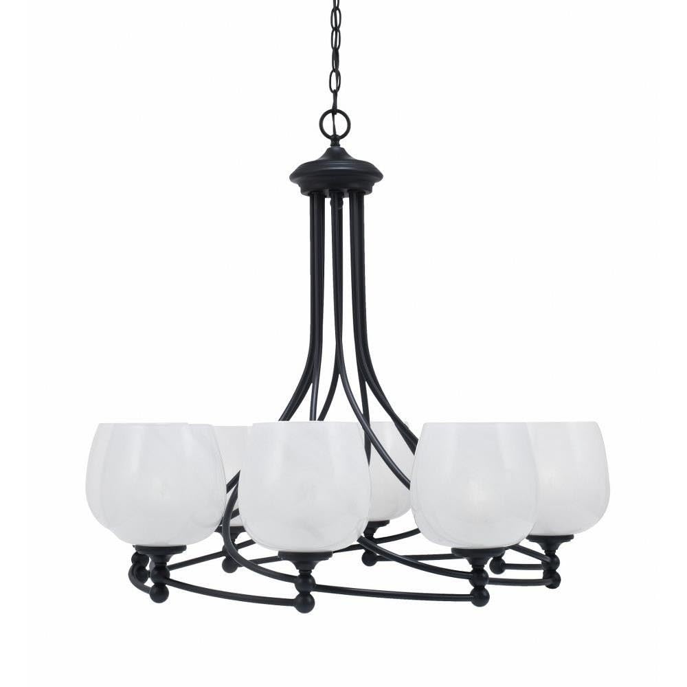 Collection: Capri, Material: Steel, Finish Color: Matte Black, Width: 32.75", Height: 30.5", Chain Length: 120", Lamping Type: Incandescent, Number Of Bulbs: 8, Wattage: 60 Watts, Dimmable: Yes, Moisture Rating: Dry Rated, Desc: Capri Uplight, 8 Light, Chandelier Shown In Matte Black Finish With 6" Clear Bubble Glass,