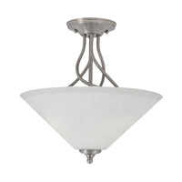 Q: What materials are used in the construction of the Capri lighting fixture?A: The Toltec Capri 3 Light Semi-Flush Mount is made of glass with a brushed nickel finish, providing both durability and an elegant appearance.